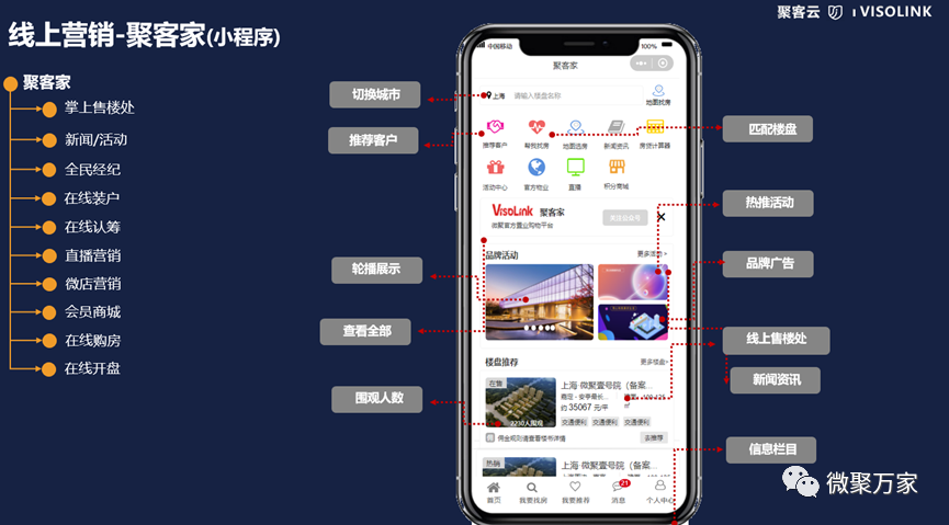 截至目前,微聚万家与旭辉集团近三年左右的通力合作,微聚万家为旭辉营销信息化打造了多项标杆产品项目,例如:营销管理、佣金管控、首开管控、营销流程管控、旭客家、旭客通、旭客汇等多项产品,有力的支撑了旭辉集团内外对数字化营销的迫切需求与发展策略