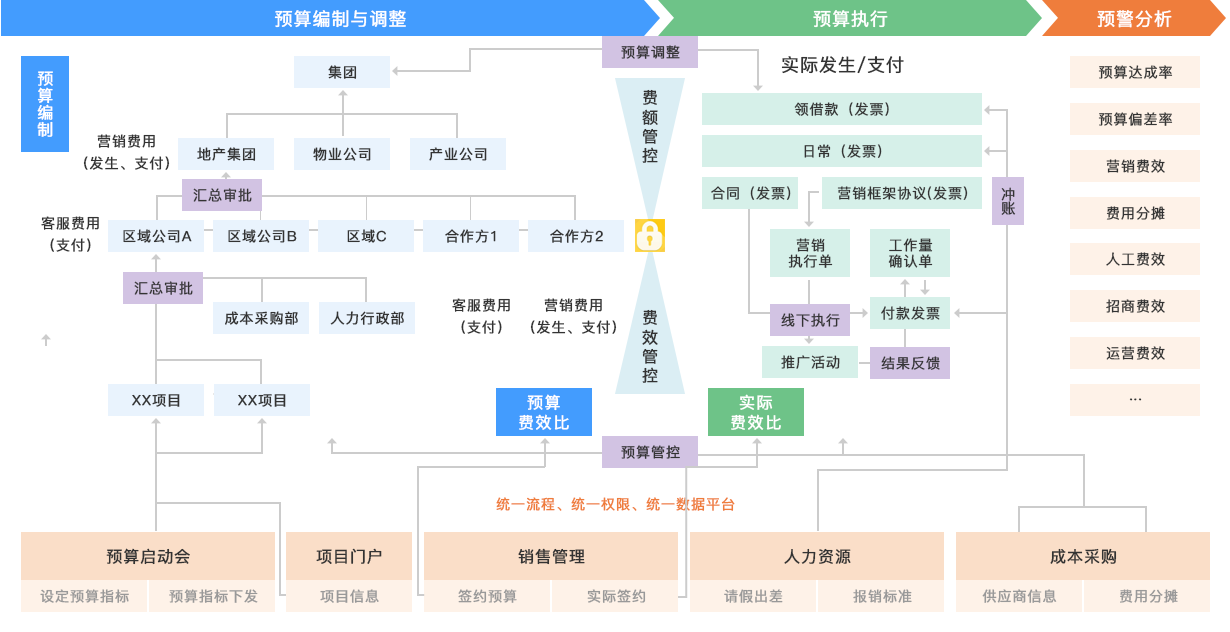 季度、月度,集团、公司、项目分级管理,达到营销费用精细化管控,构建企业的竞争优势和壁垒